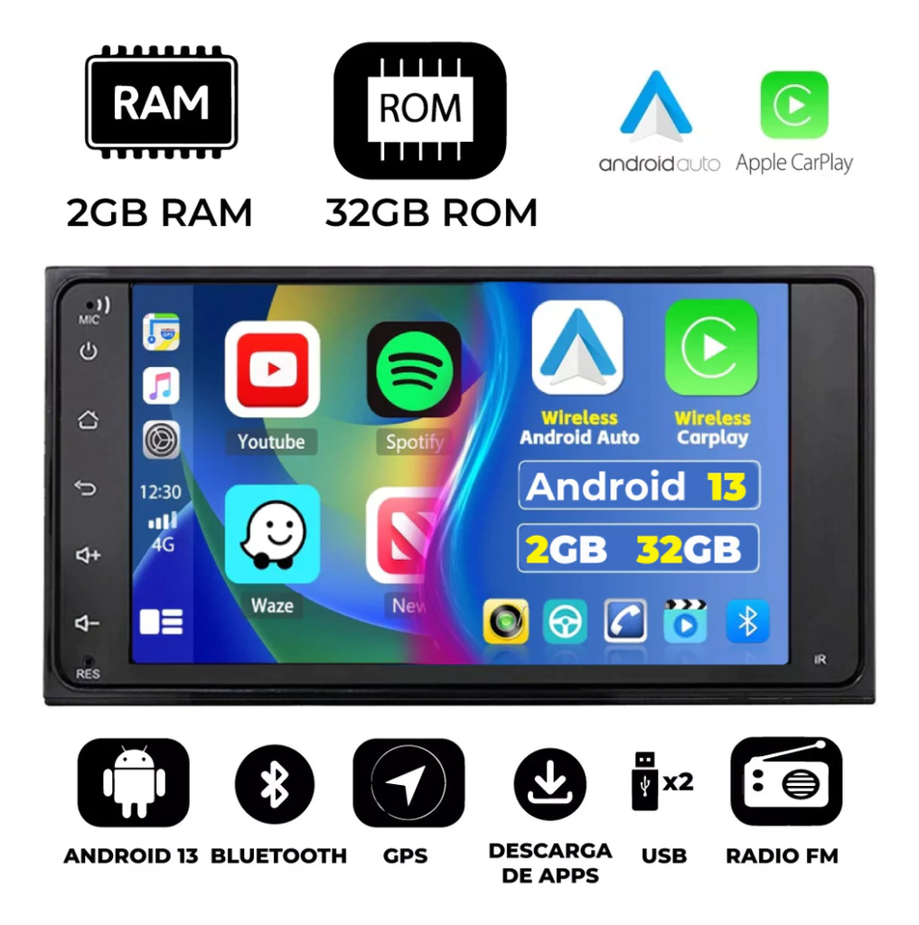 Stereo 7 Android Carplay Bt Gps 2-32gb Yaris 2016/24 Strong