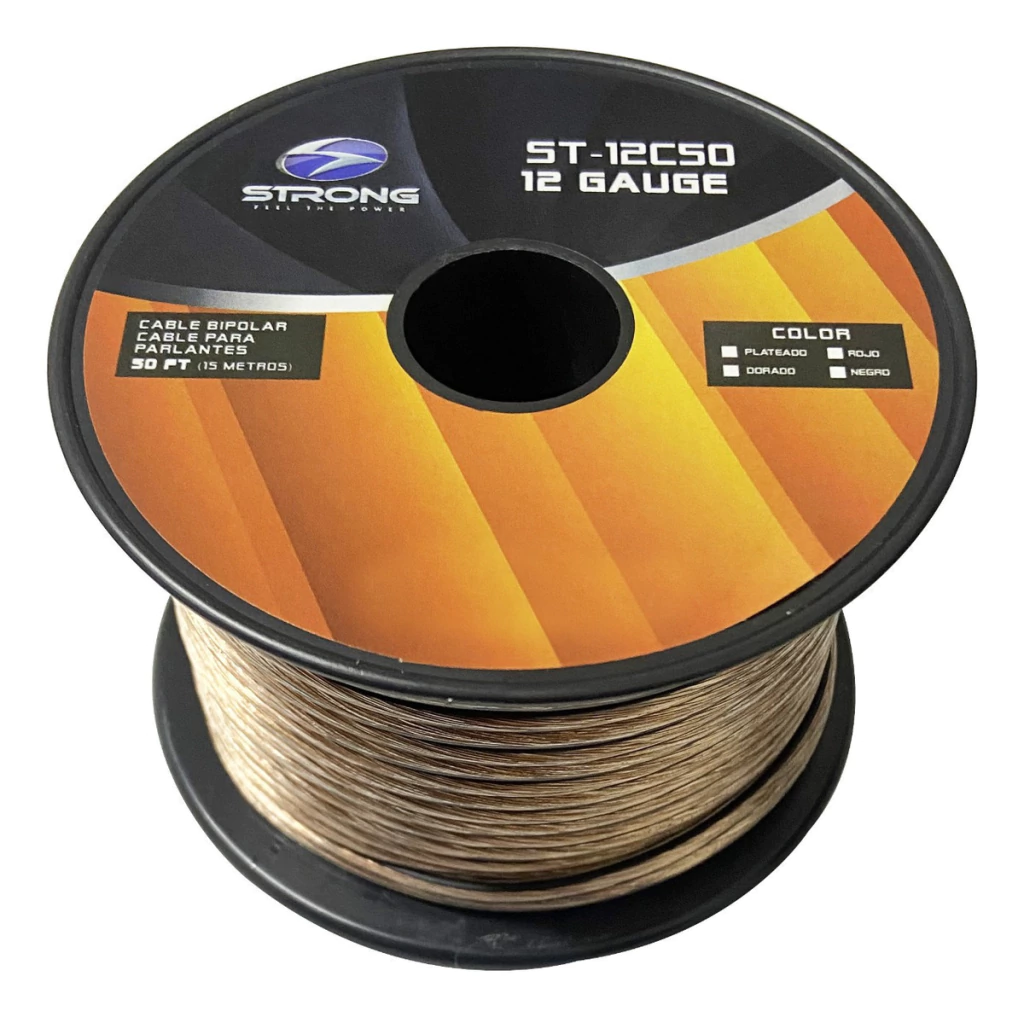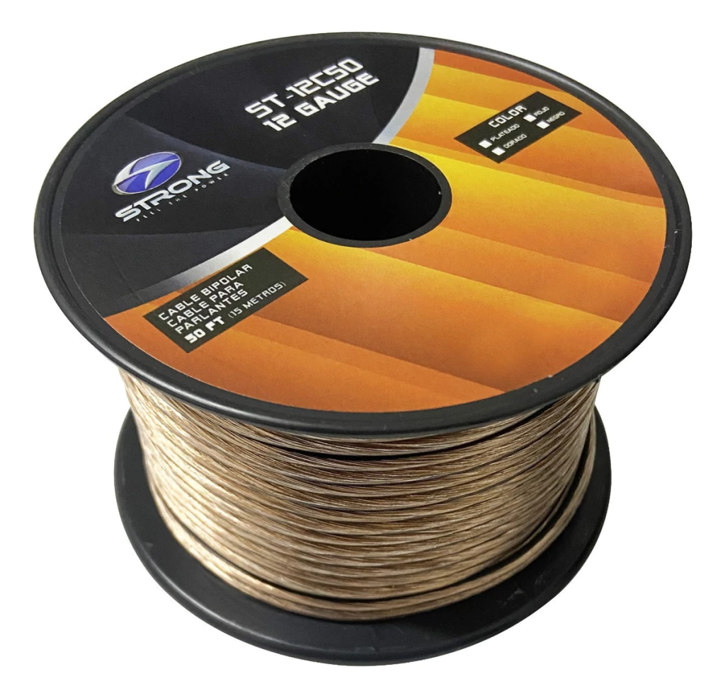 Cable Bipolar Voyz 12 Awg Rollo 15.2 Metros Transpare Y Rojo