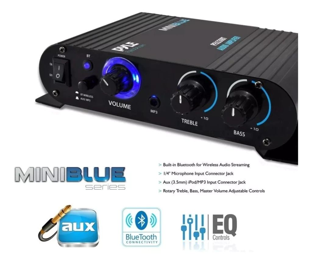 Pyle Mini Amplificador Potencia Pfa330bt Bluetooth Mic 90w