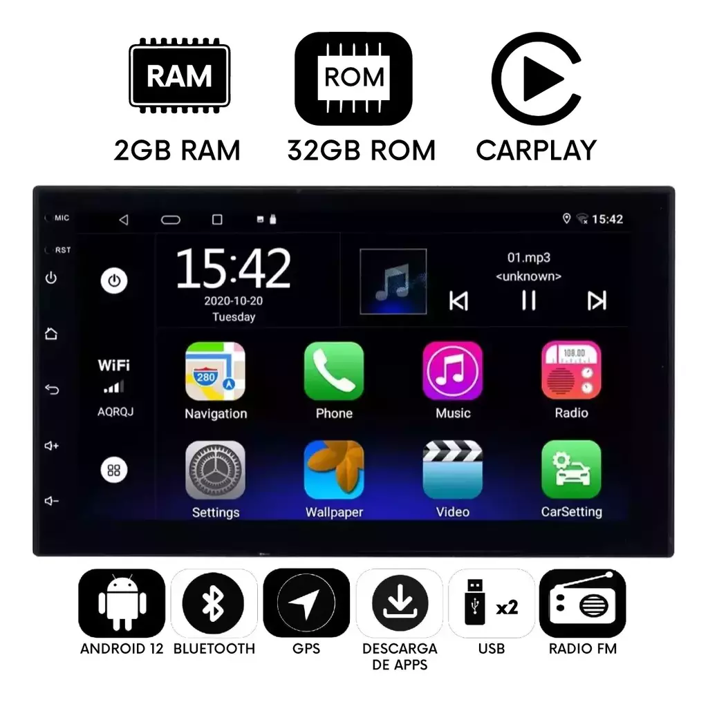 Stereo Pantalla 7 Tactil Gps Android Bt Comando Al Volante